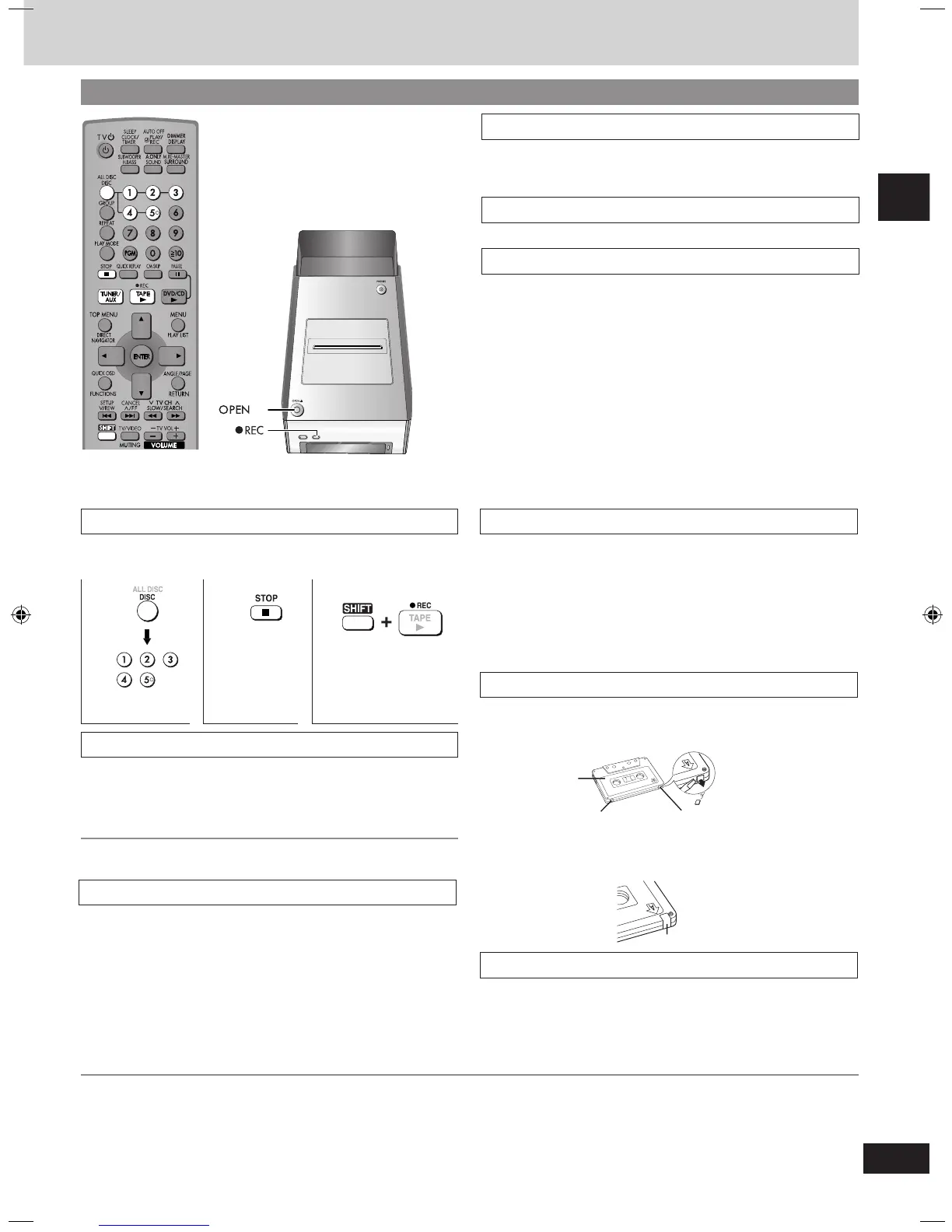To record on the tape again, cover the hole with adhesive tape.