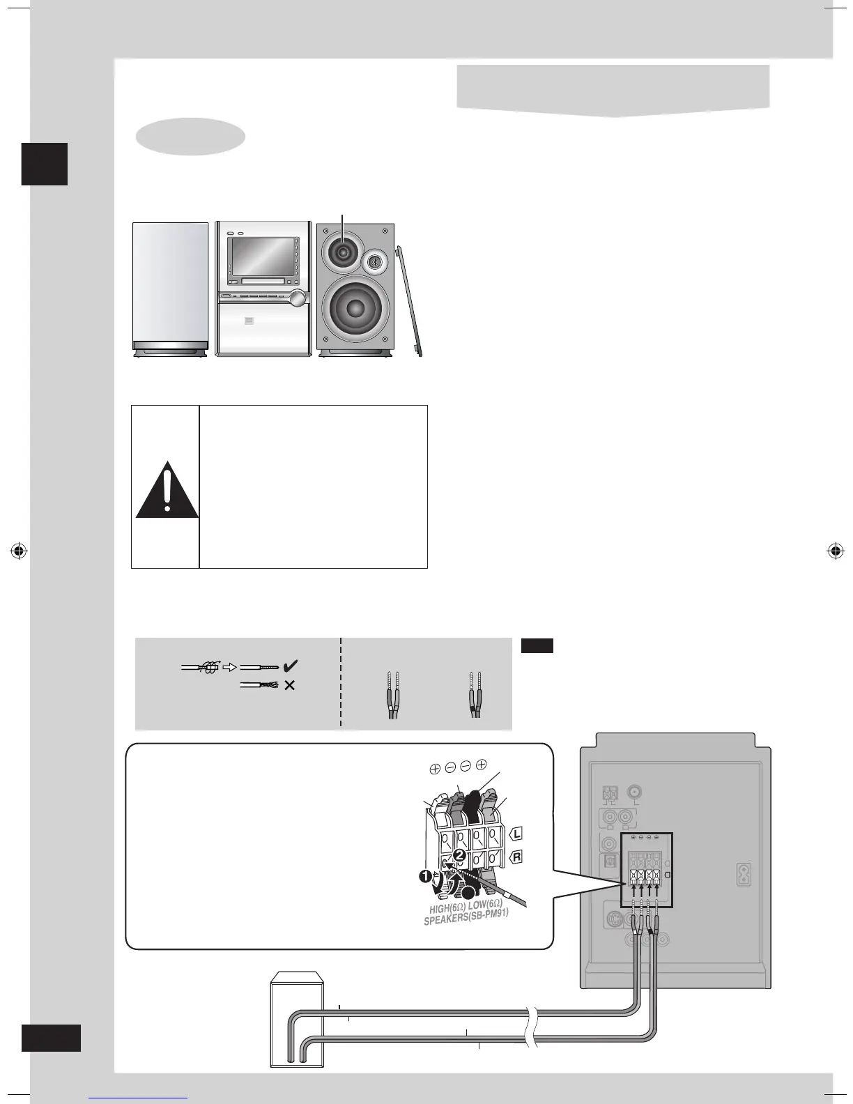 • Do not attach these speakers to