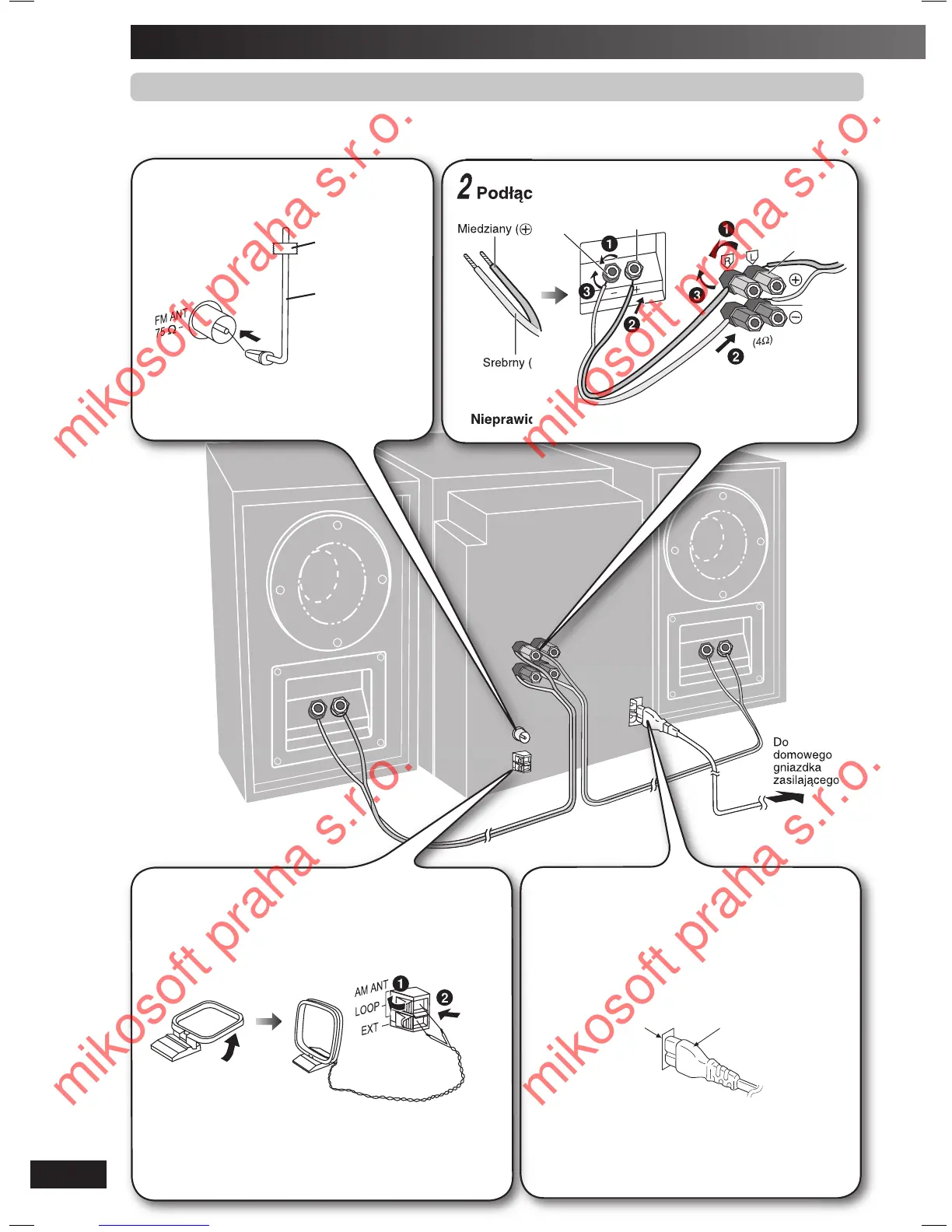 Pod∏àcz przewód zasilania do domowego gniazdka sieciowego dopiero po wykonaniu wszystkich pozosta∏ych