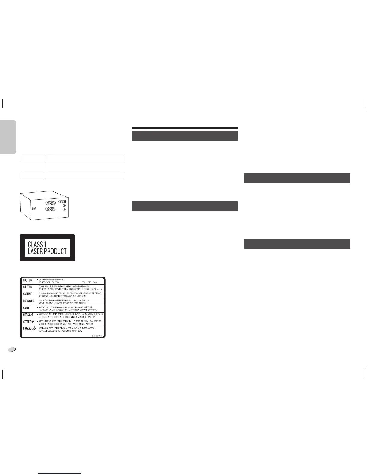 • This unit utilizes a laser. Use of controls or adjustments