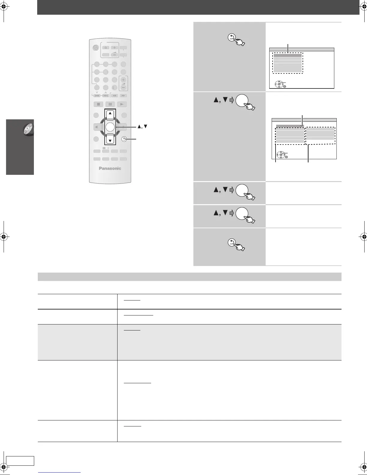 ≥ Los elementos subrayados en la tabla siguiente son los ajustes de