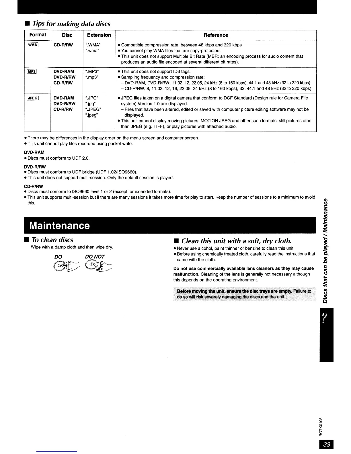 • Discs must conform to UDF bridge (UDF 1.02/IS09660).