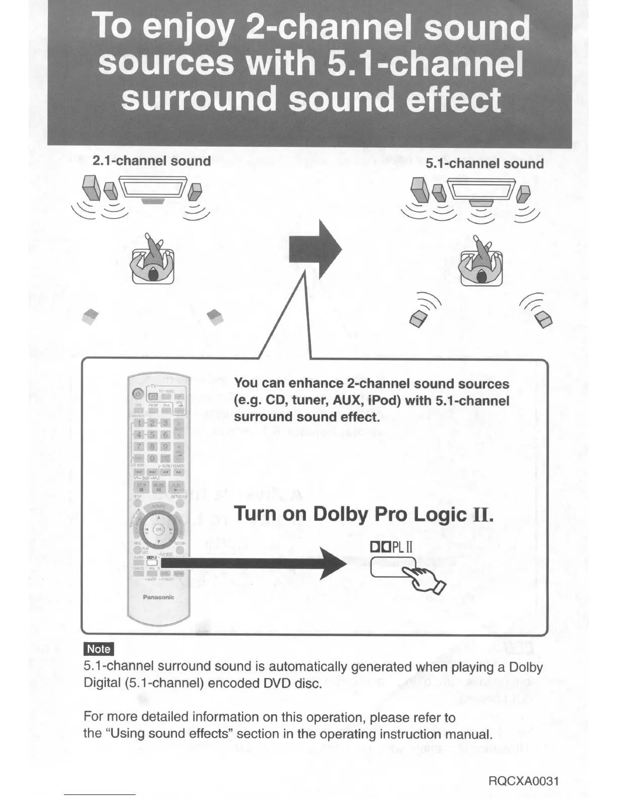 5.1-channel surround sound is automatically generated when playing a Dolby
