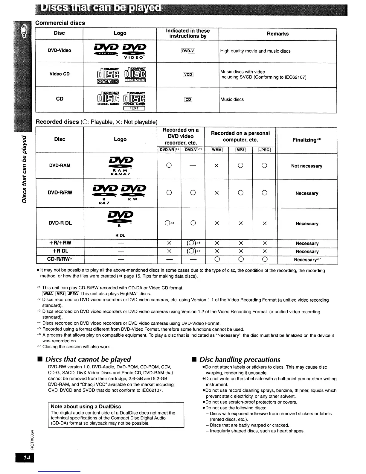 Panasonic SC-PT950 - Discs That Can Be Played; Disc Compatibility Chart