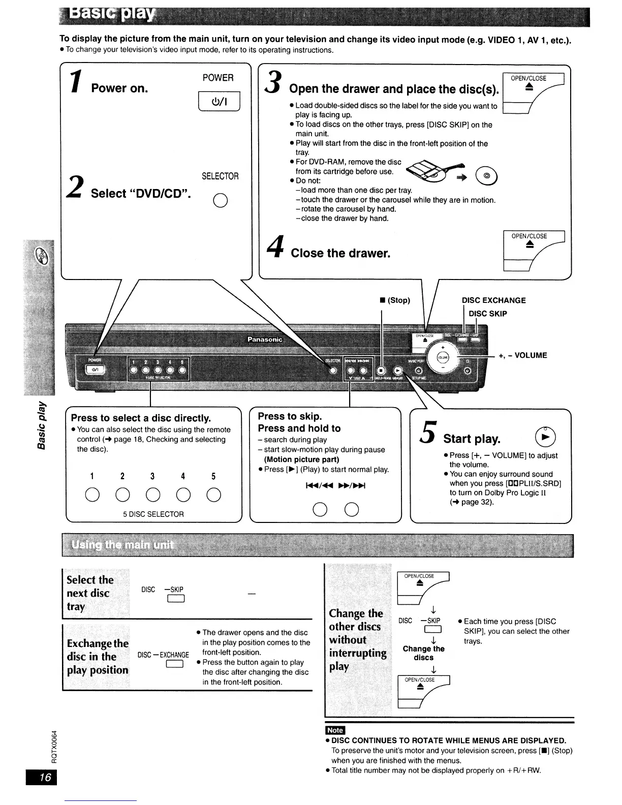 Panasonic SC-PT950 - Basic Play; Main Unit Playback Controls