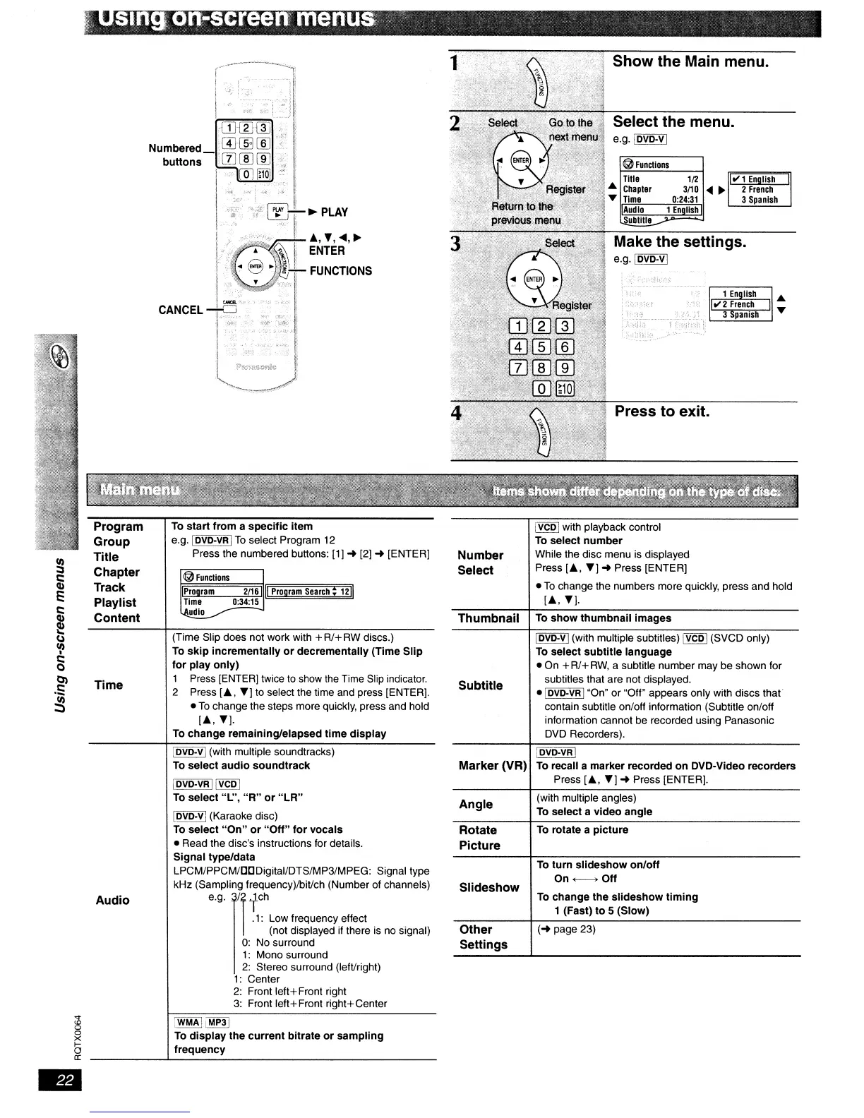 Panasonic SC-PT950 - Using On-Screen Menus; Main Menu Operations