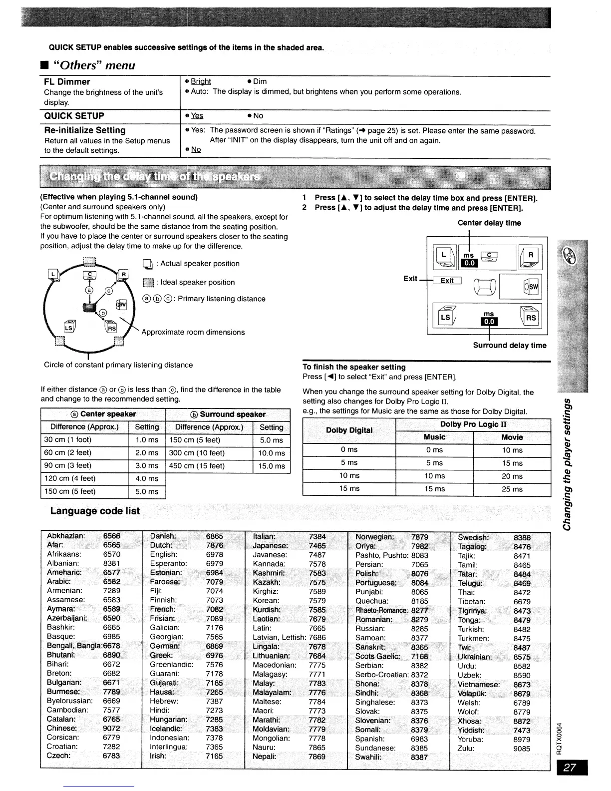 Panasonic SC-PT950 - Changing the Delay Time of the Speakers; Adjusting Speaker Delay Times
