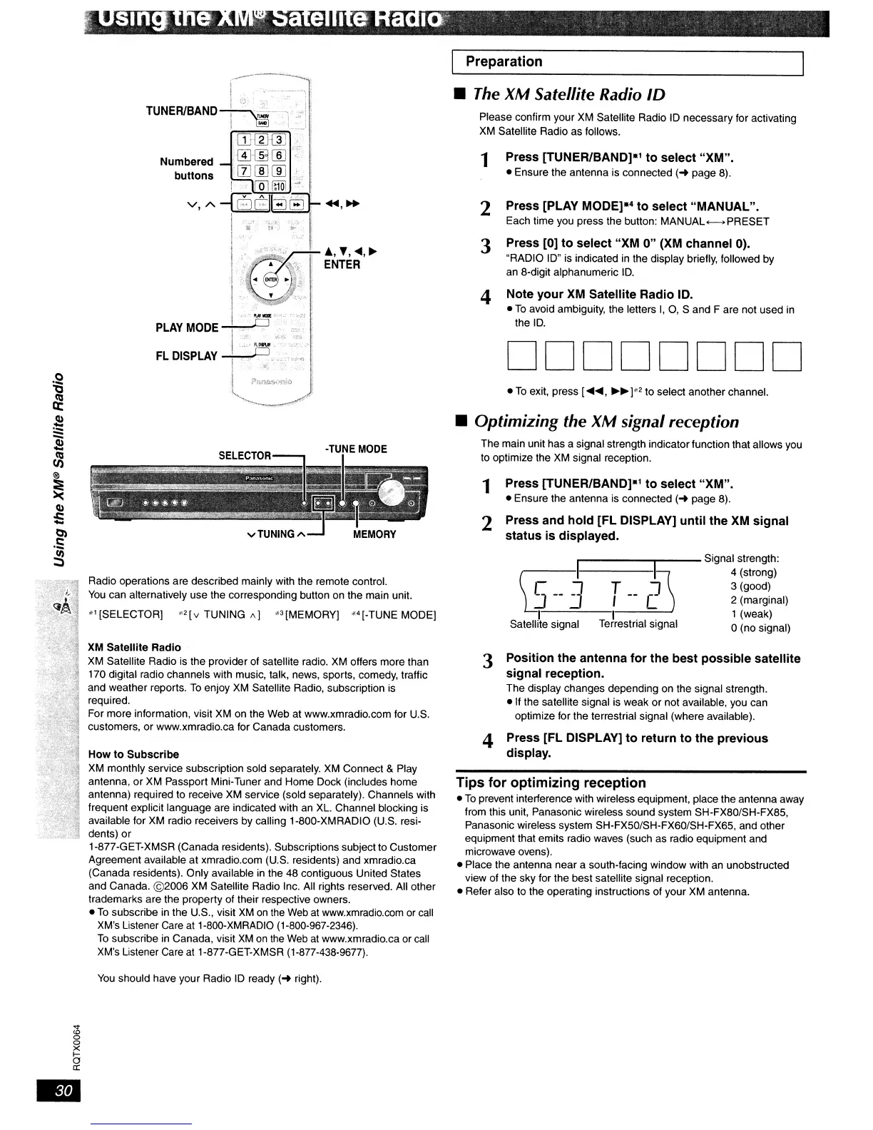 Panasonic SC-PT950 - Using the XM Satellite Radio; Optimizing XM Signal Reception