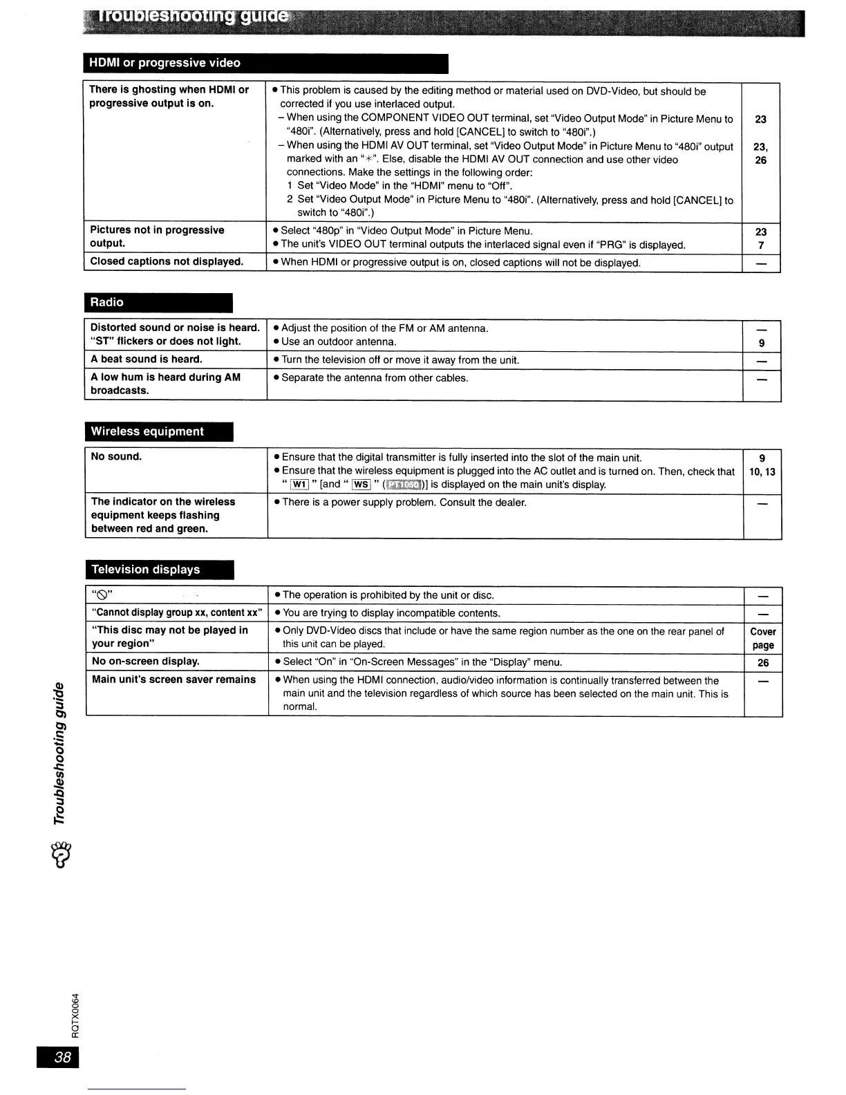 Panasonic SC-PT950 - Troubleshooting HDMI and Wireless Issues