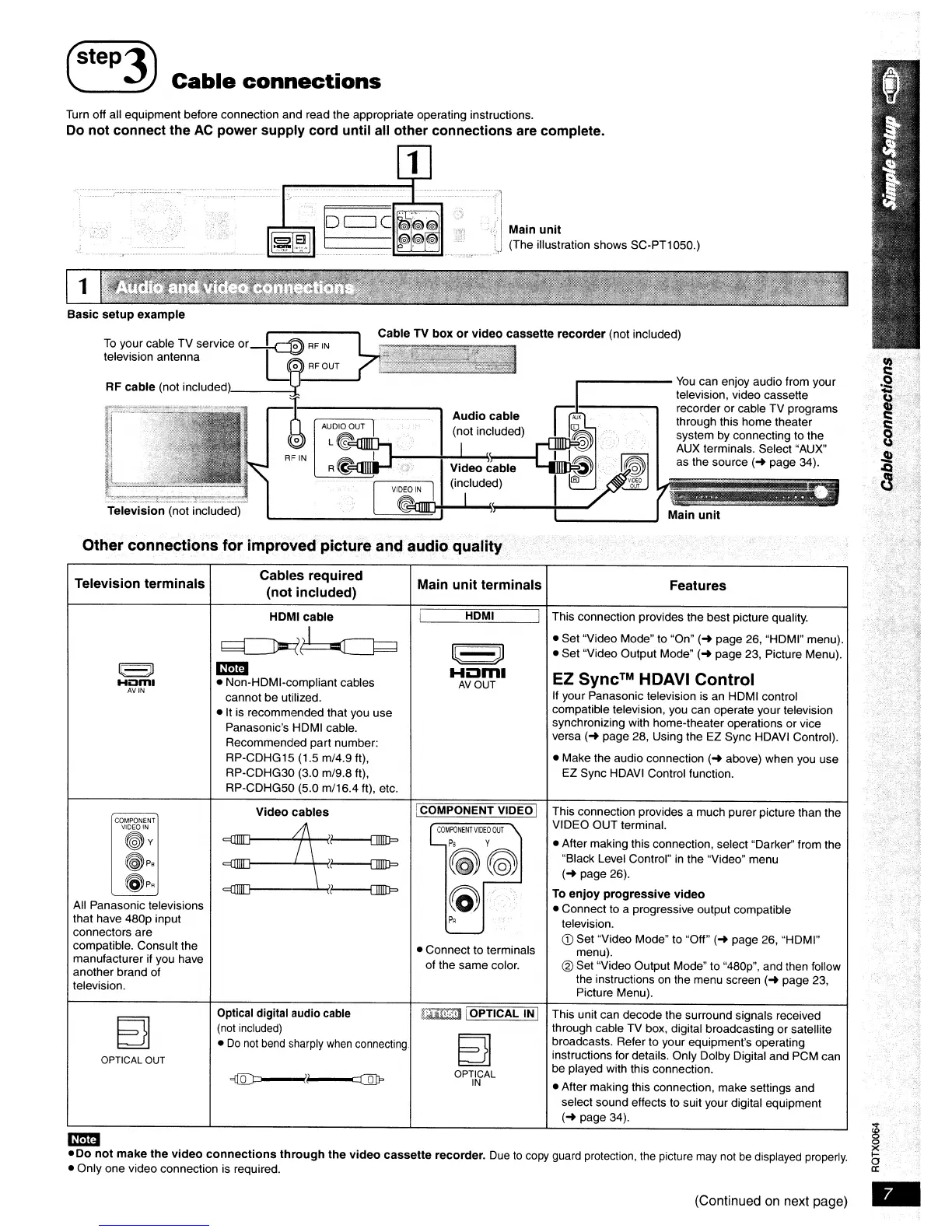 Panasonic SC-PT950 - Audio and Video Cable Connections