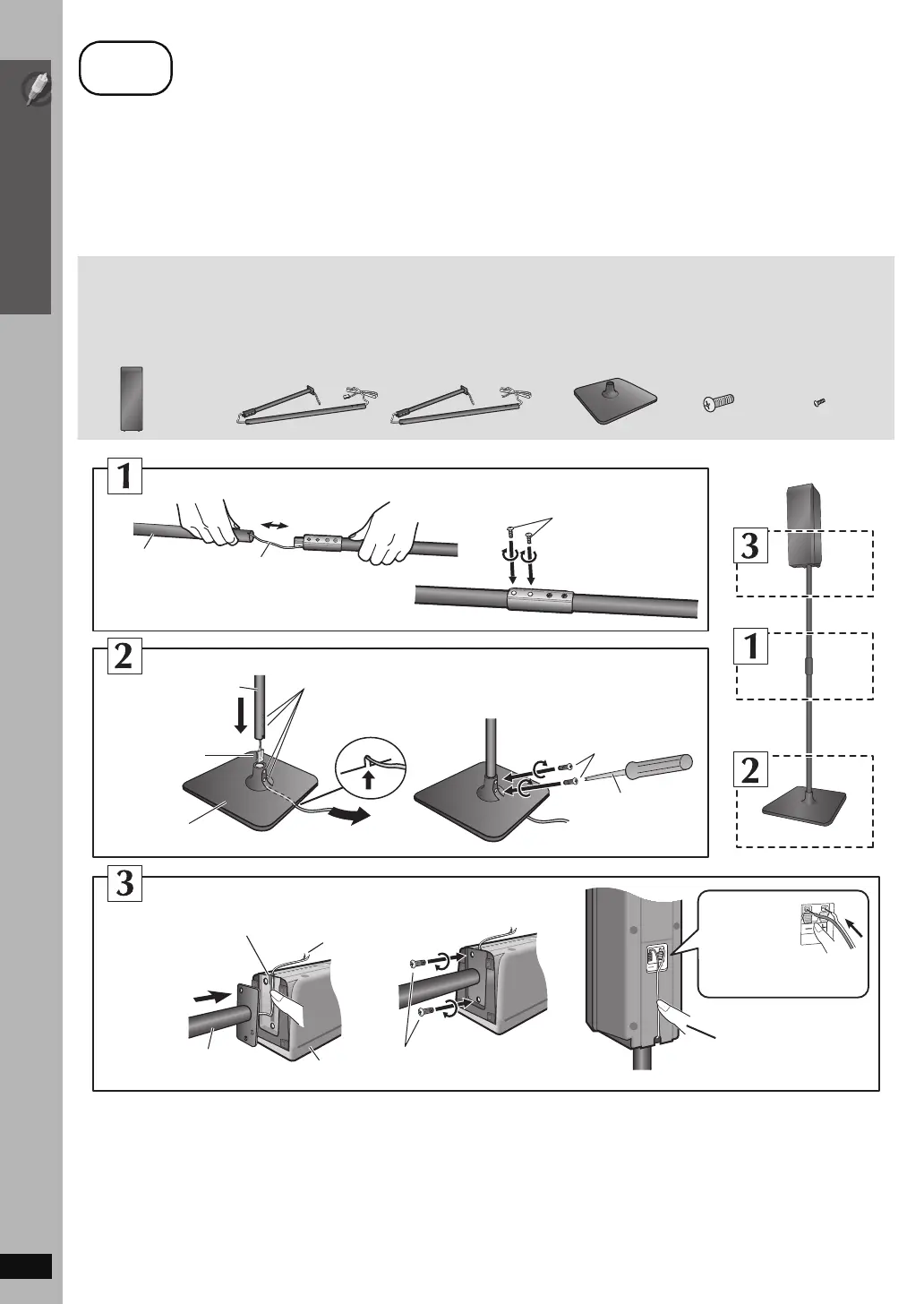 Make sure you have all the indicated components before starting assembly, setup, and connection.