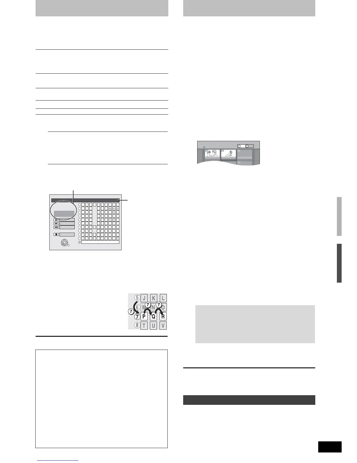 Copying from a video cassette recorder / Entering text / Delete Navigator