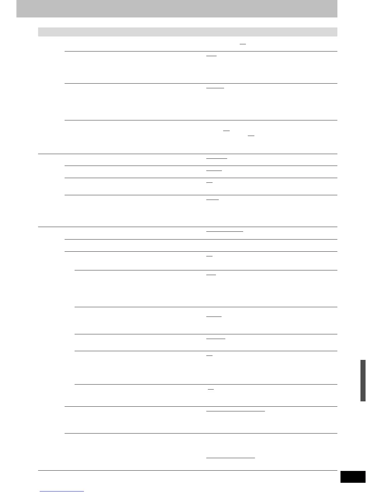 Tabs Menus Options (Underlined items are the factory presets.)