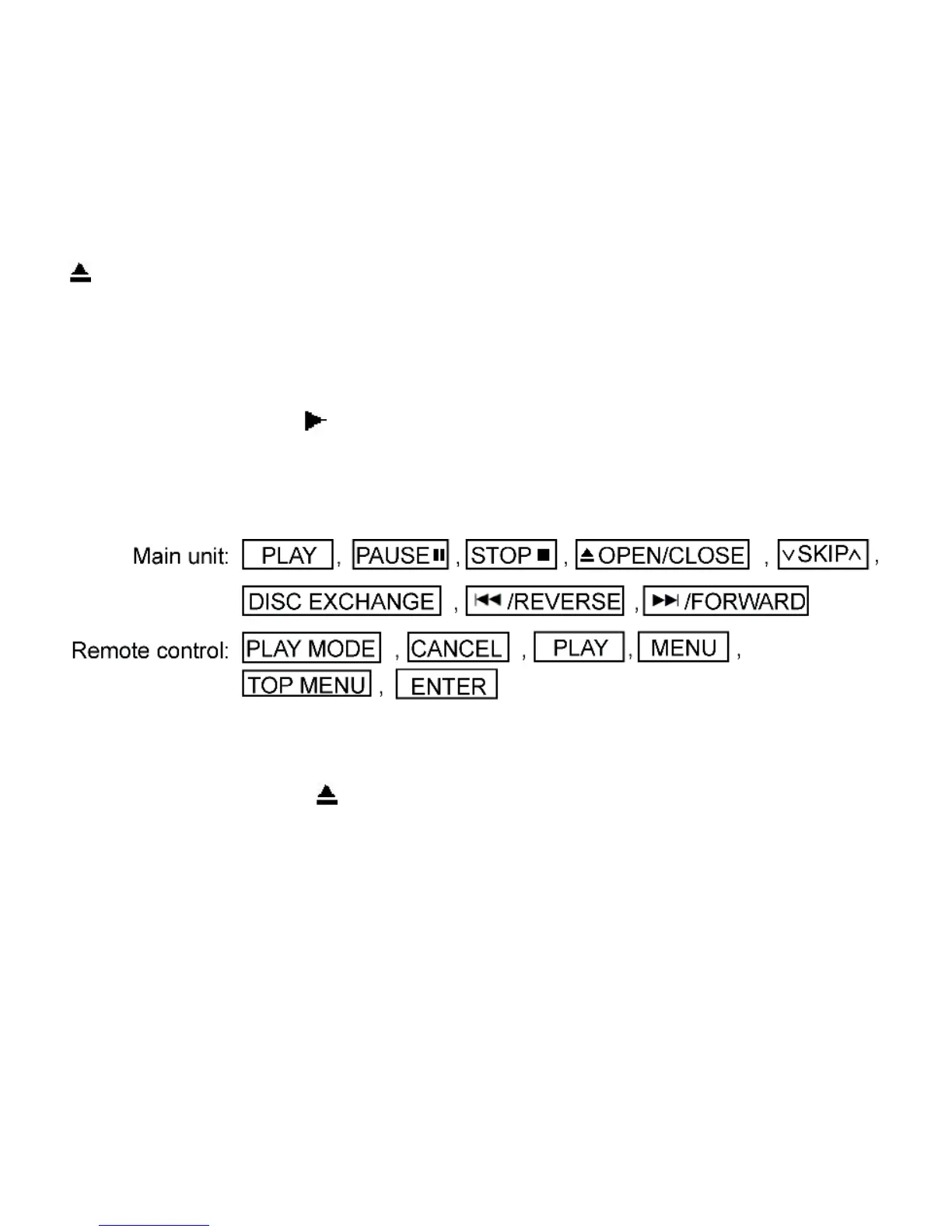 1. With the SELECTOR on DVD/CD and POWER ON, hold down the [CD PLAY] KEY on the main unit, and then press