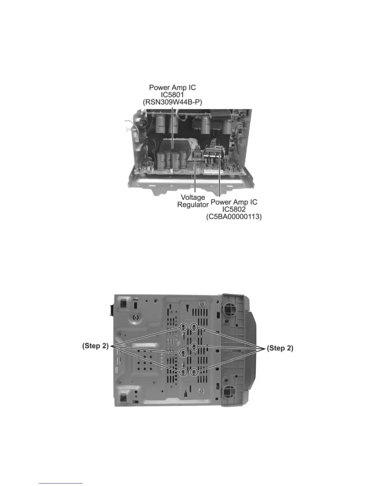 Step 1 Remove 2 screws fixed to the Power Amplifier IC.