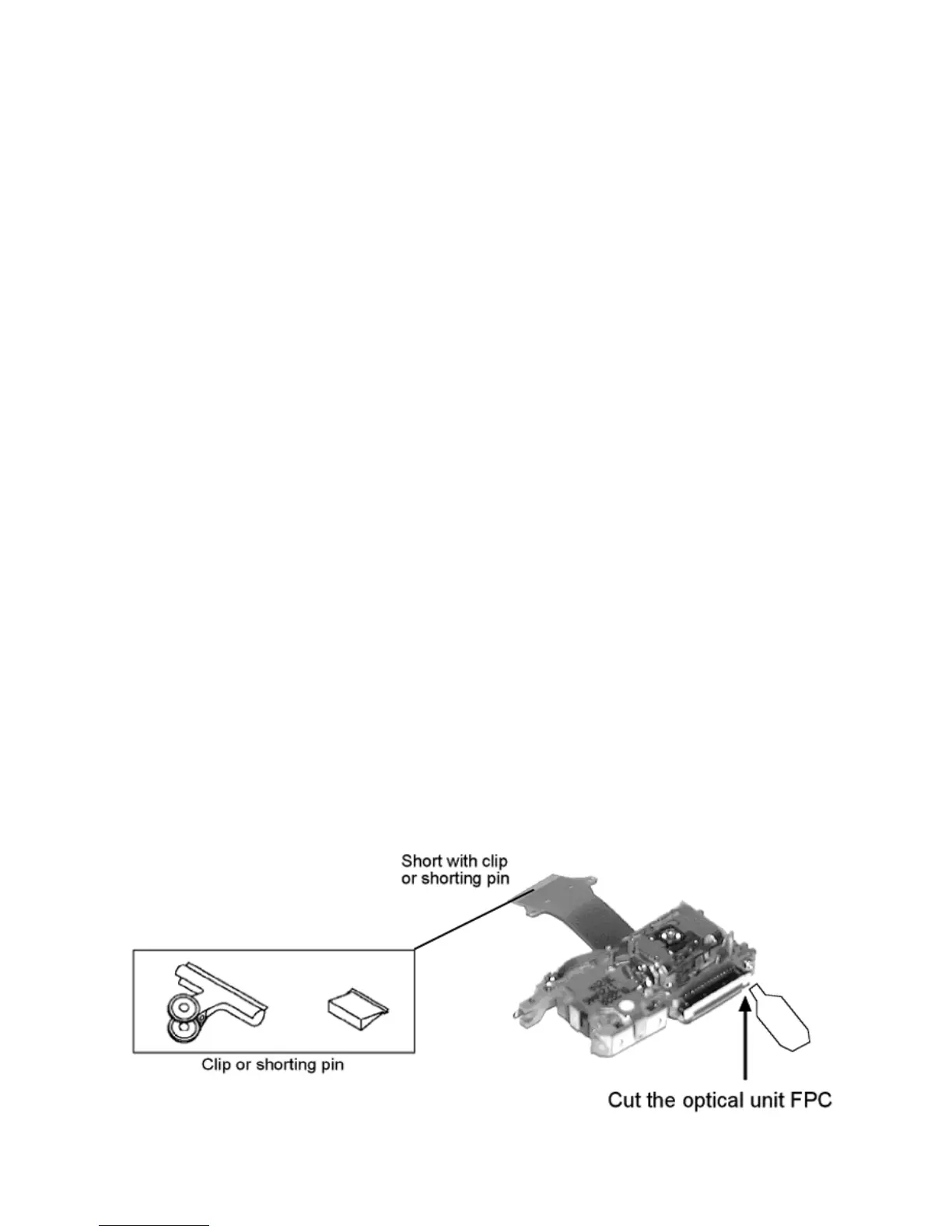 2. Short-circuit the flexible cable of optical pickup remove from the circuit board using a short-circuit pin or clip in order to