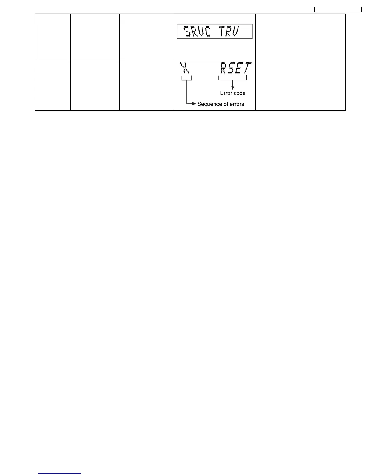 Error Code Diagnosis Contents Description of error Automatic FL Display Remarks