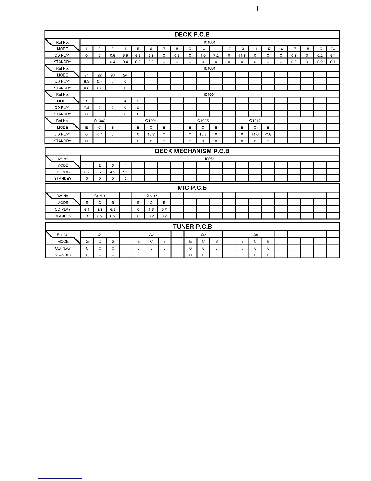15.4. Deck P.C.B. & Deck Mechanism P.C.B. & Mic P.C.B. & Tuner P.C.B.