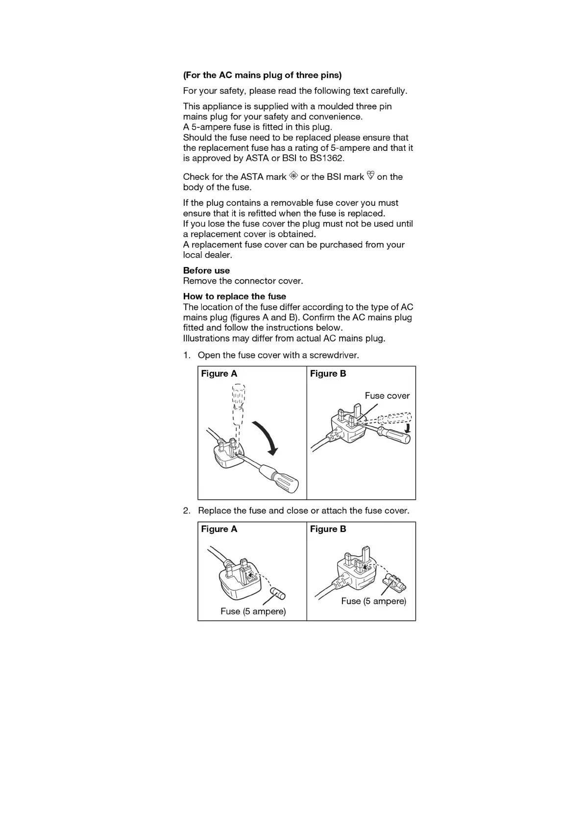 Panasonic SC-UA3E - AC Cord Safety and Fuse Replacement