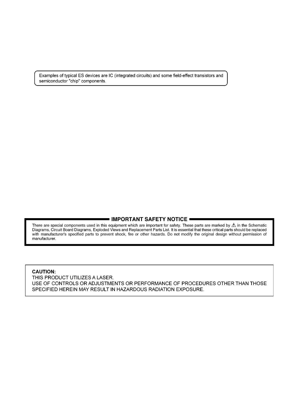 1. Do not disassemble the pickup unit, since radiation from exposed laser diode is dangerous.