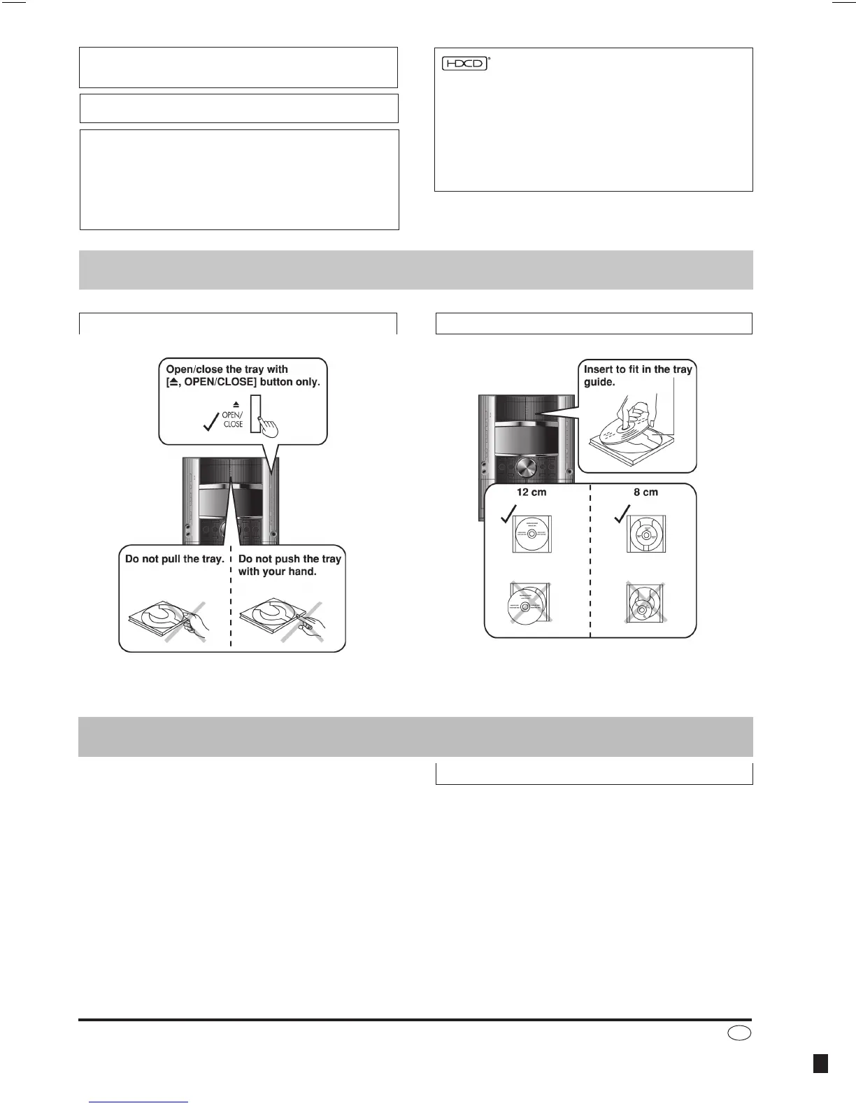 Panasonic SC-VK92D - Tray;disc handling procedure; Opening;closing a disc tray; Inserting a disc correctly; Maintenance