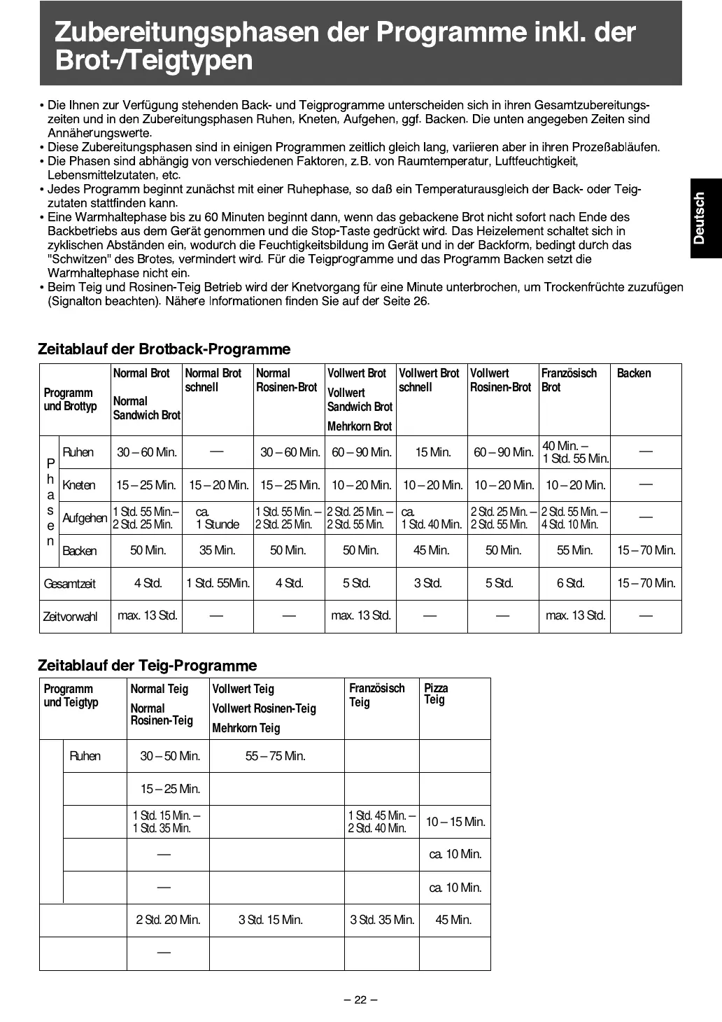 Die Ihnen zur Verfgung stehenden Back- und Teigprogramme unterscheiden sich in ihren Gesamtzubereitungs-