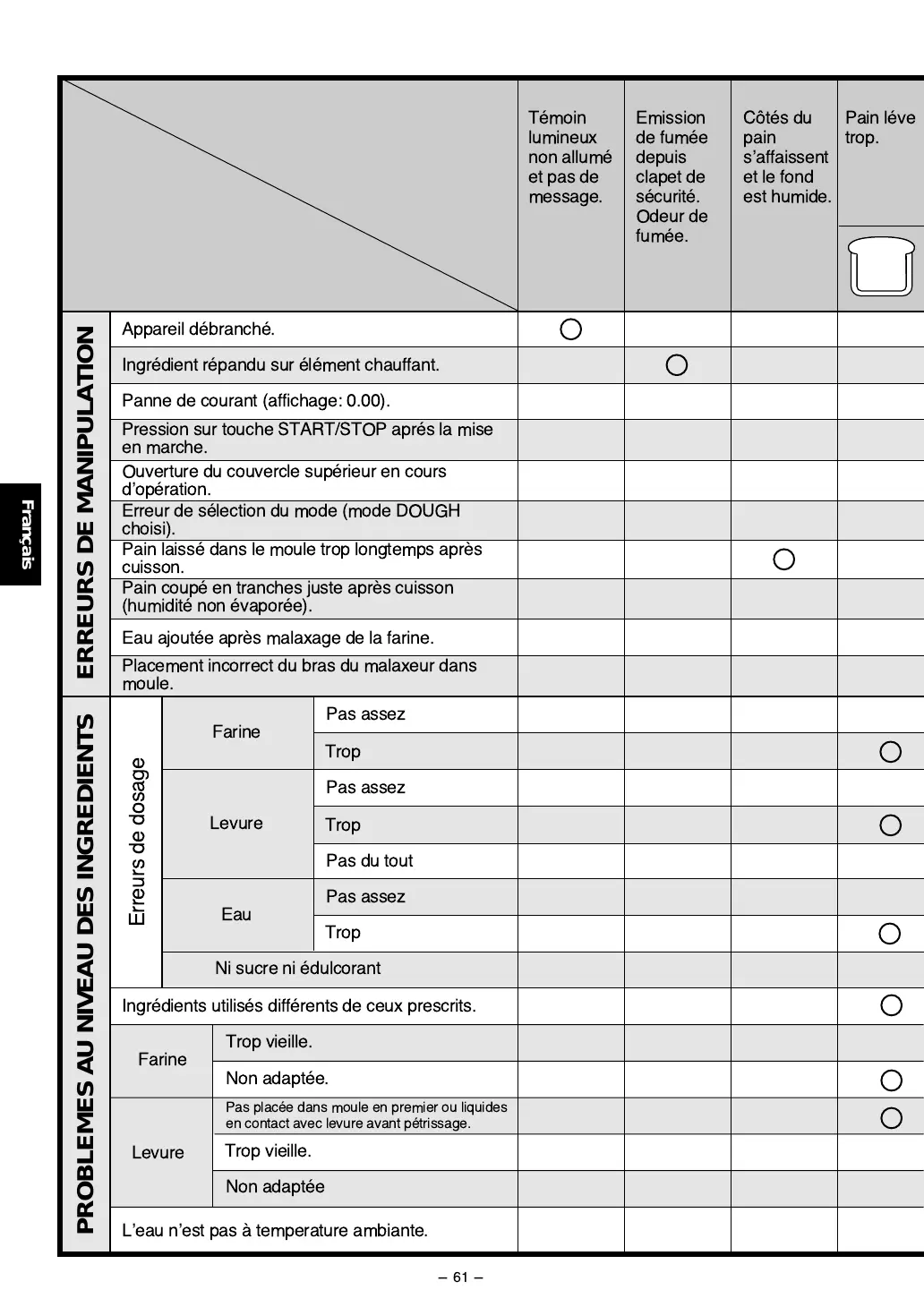 ERREURS DE MANIPULATIONPROBLEMES AU NIVEAU DES INGREDIENTS