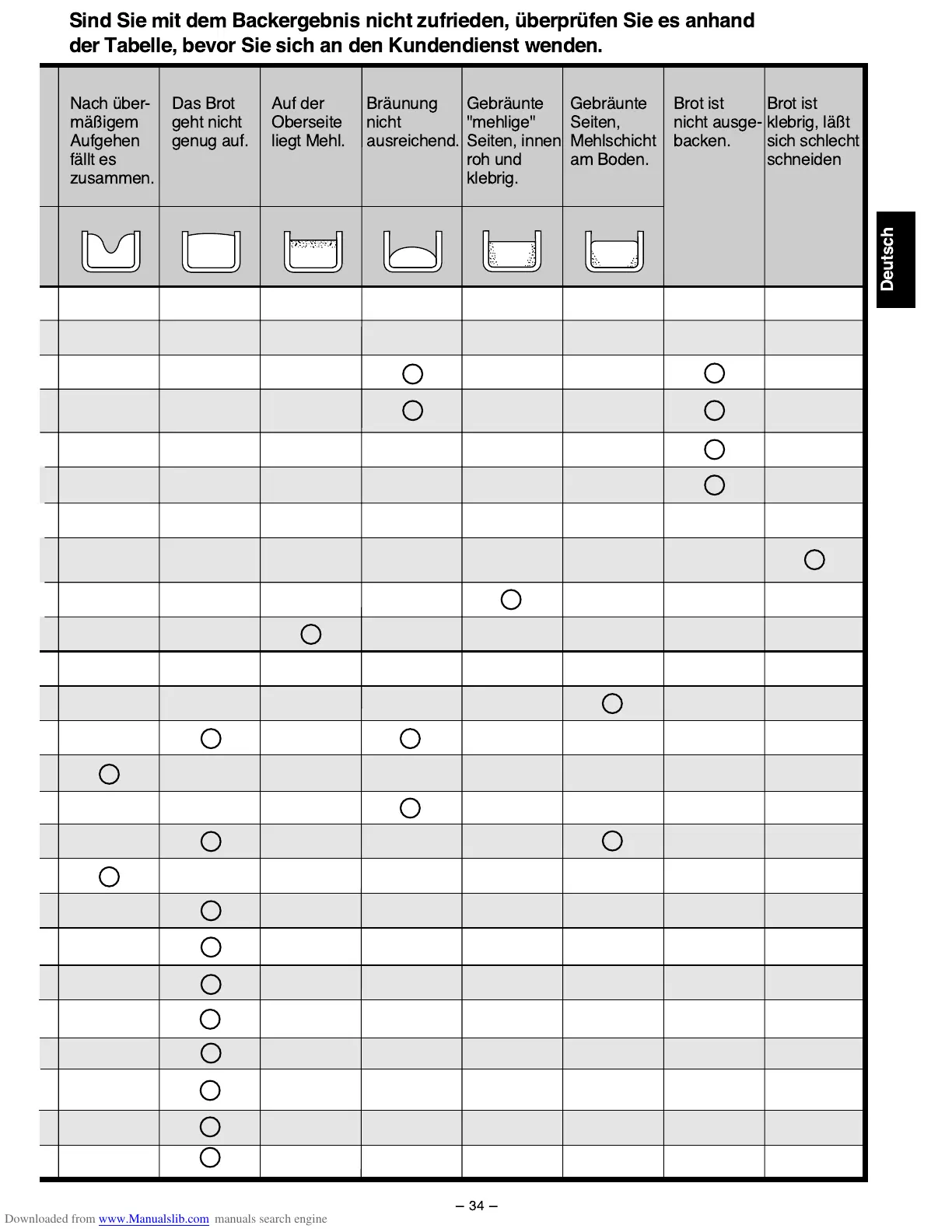 der Tabelle, bevor Sie sich an den Kundendienst wenden.