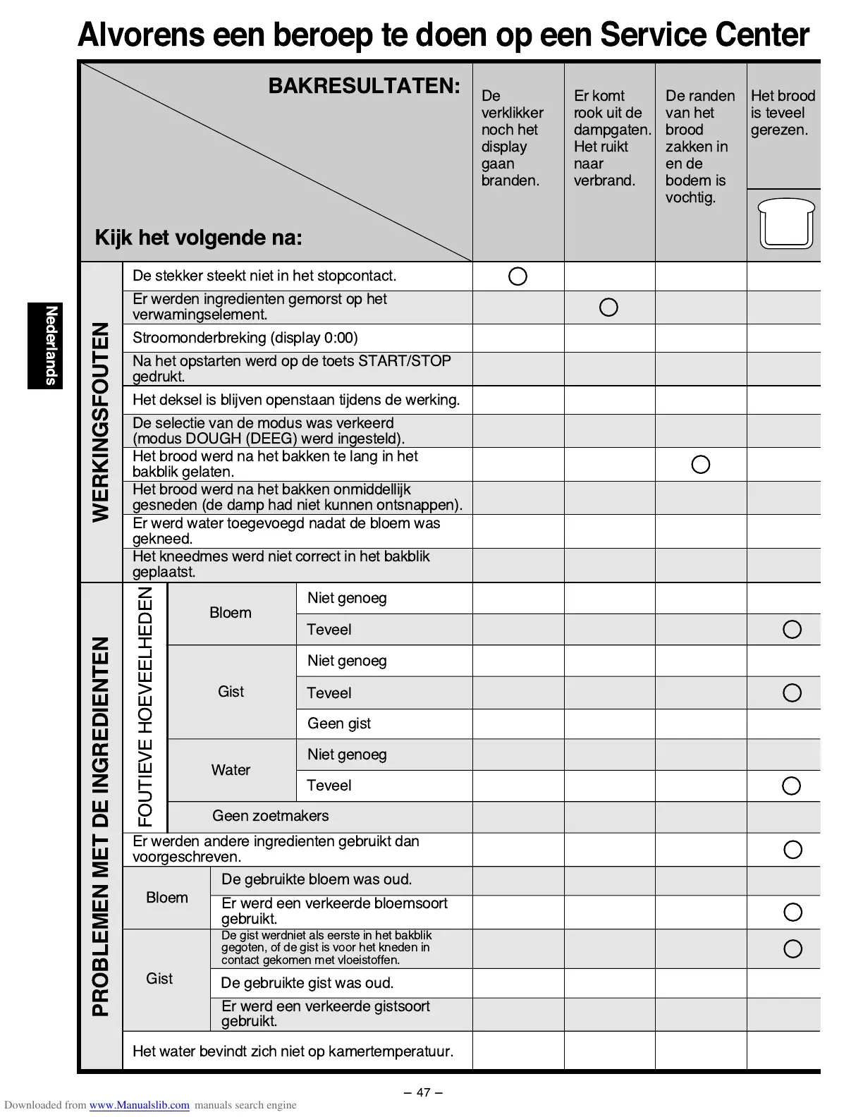 WERKINGSFOUTENPROBLEMEN MET DE INGREDIENTEN