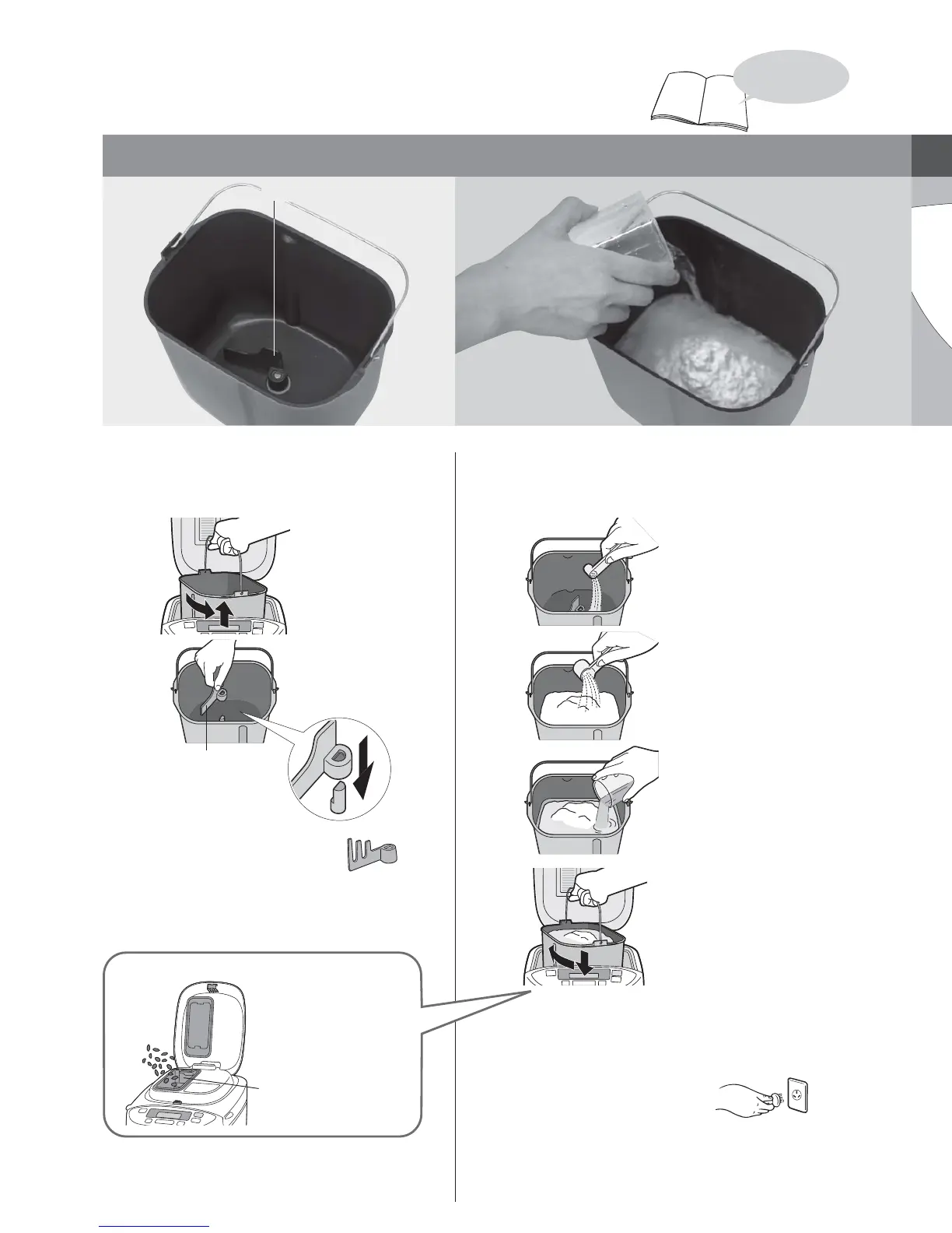 Place the ingredients in the bread pan Set the program and start Remove the bread