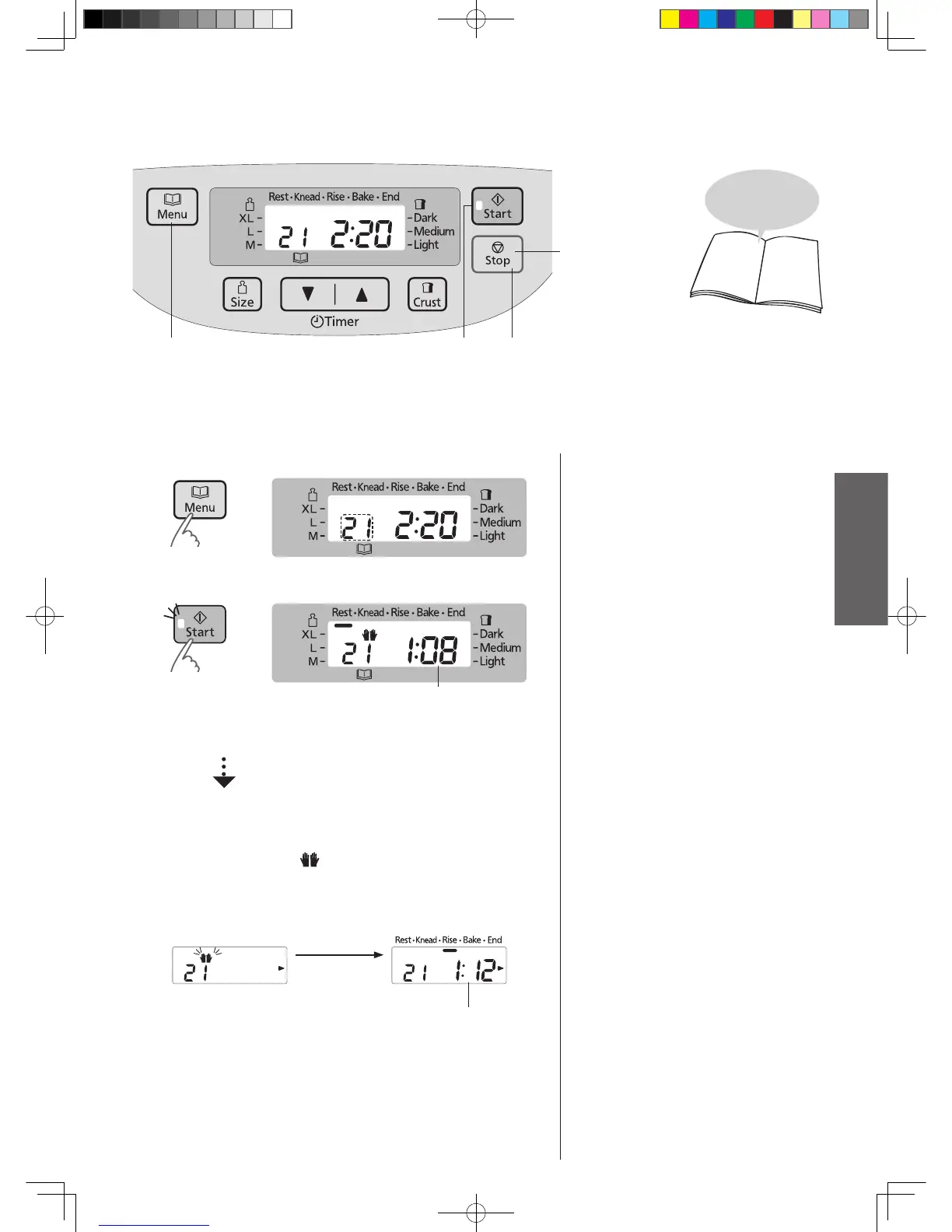 Set the bread pan into the main unit, and plug the machine into the socket. (Make sure the start light is off.)