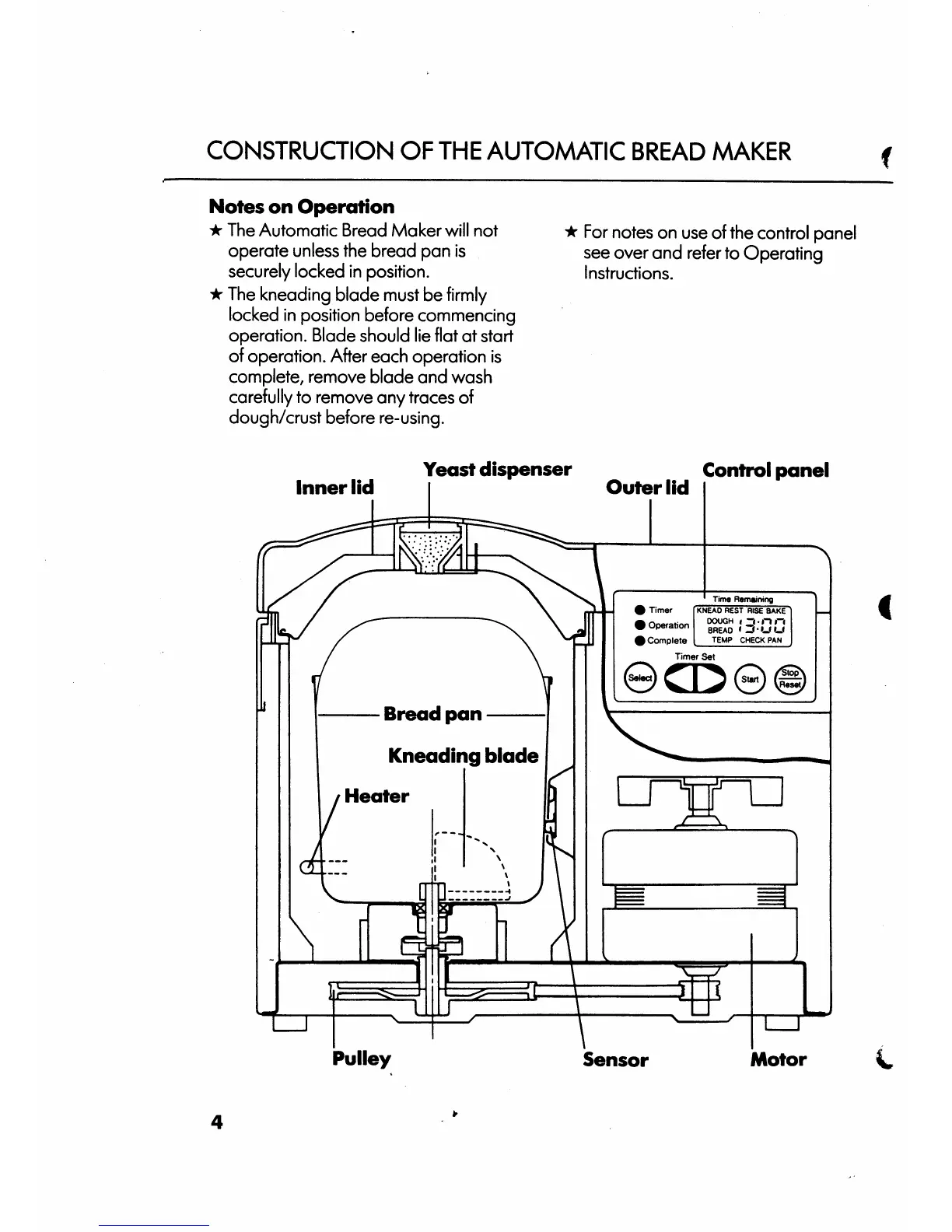 Panasonic SD-BT2P - CONSTRUCTION OF THE AUTOMATIC BREAD MAKER; Notes on Operation