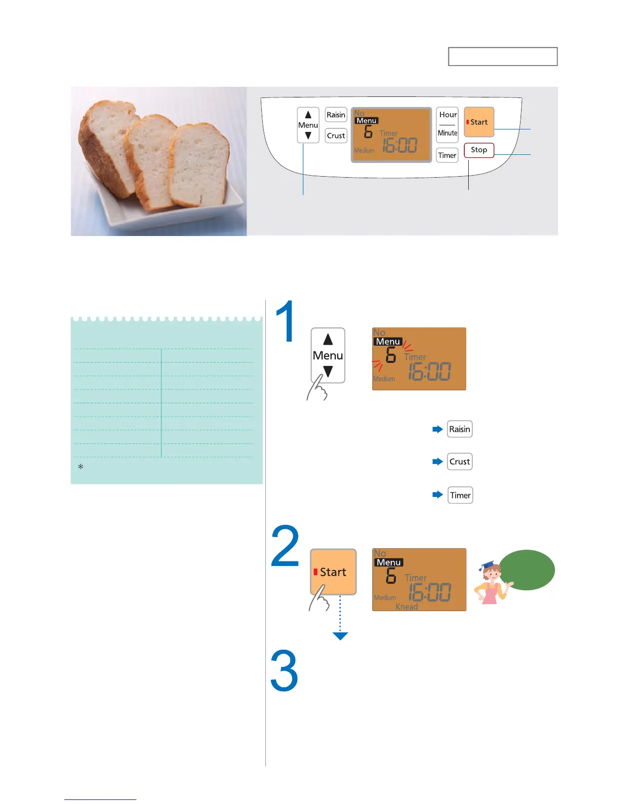 Put the bread pan into the main body and place instant dry yeast in the yeast dispenser.