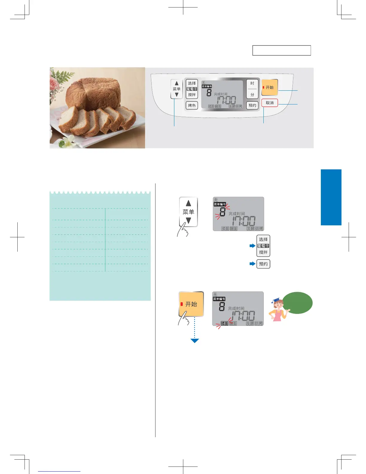 ƙ Put the bread pan into the main body and place instant dry yeast in the yeast dispenser.