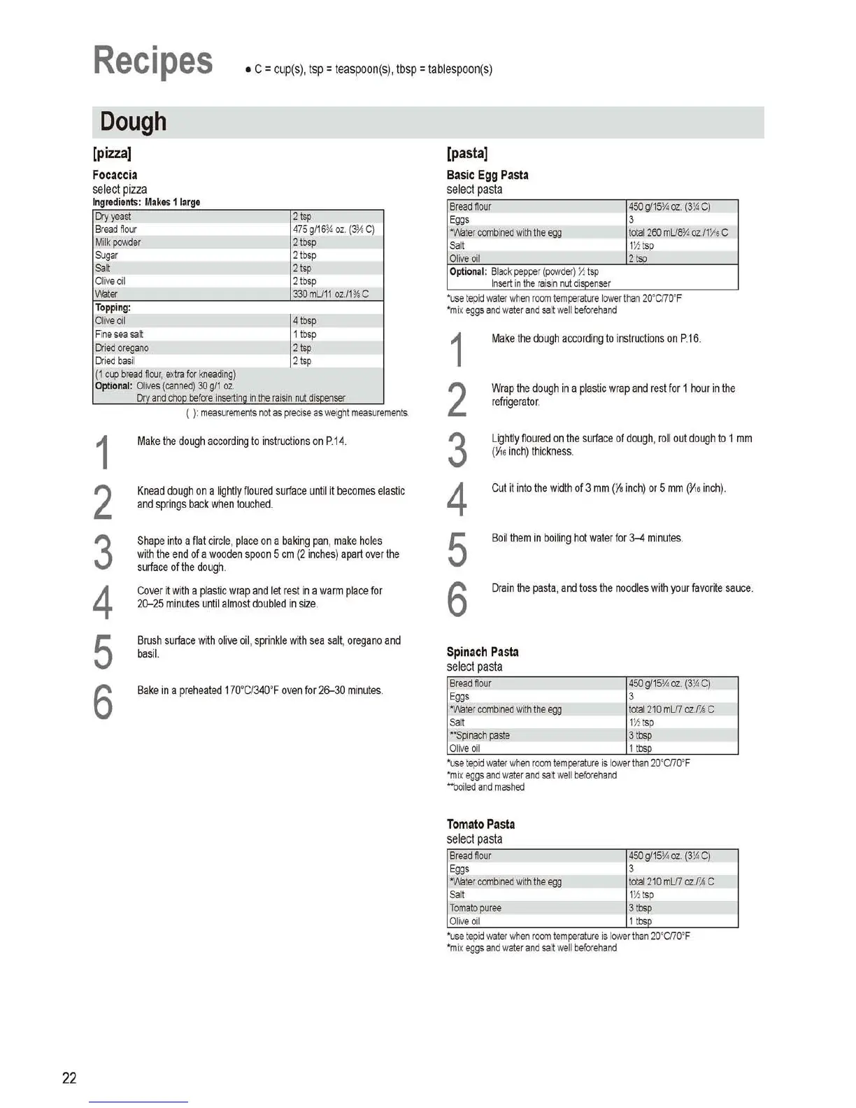 Panasonic SD-RD250 - Focaccia; Basic Egg Pasta