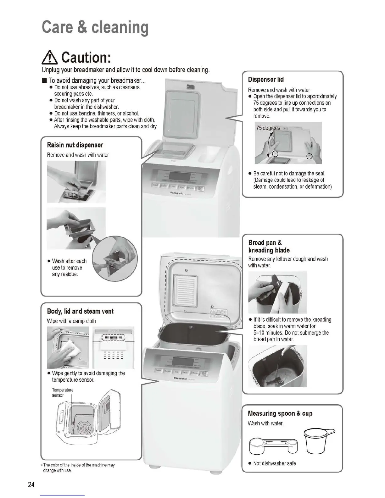 Panasonic SD-RD250 - Care & Cleaning; Raisin Nut Dispenser; Body, Lid and Steam Vent; Dispenser Lid