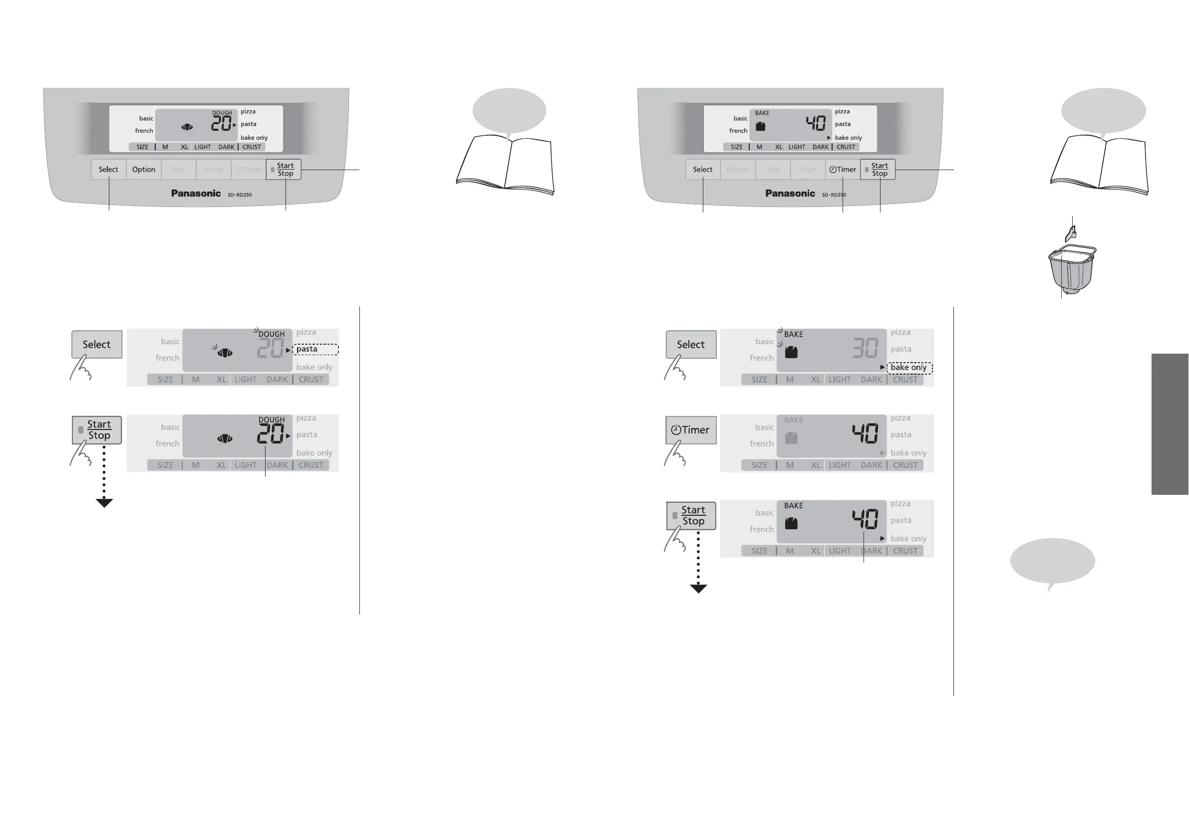Set the bread pan into the main unit, and plug the breadmaker into the outlet.