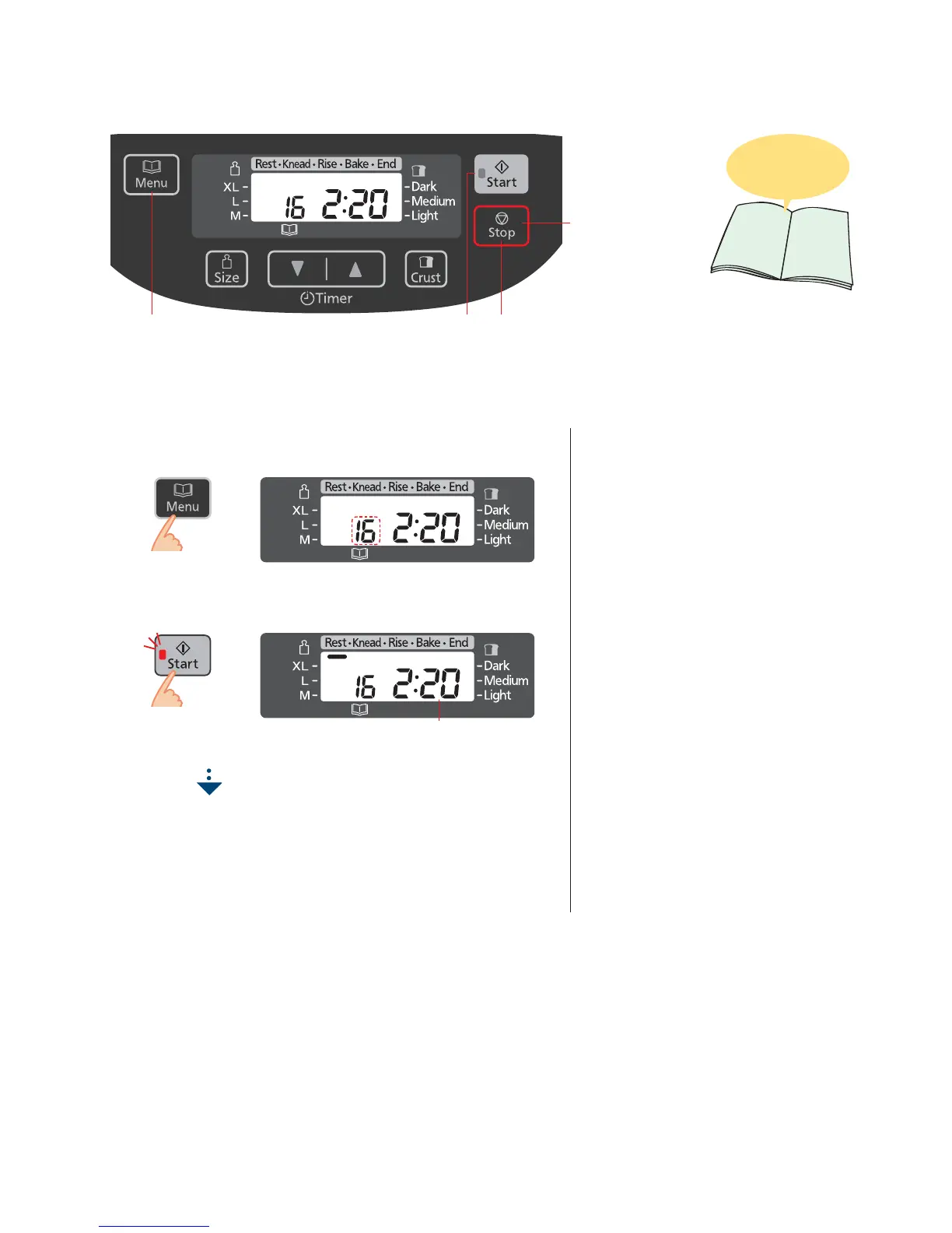 erfolgt das ‘Knead’ (Kneten) und ‘Rise’ (Gären).