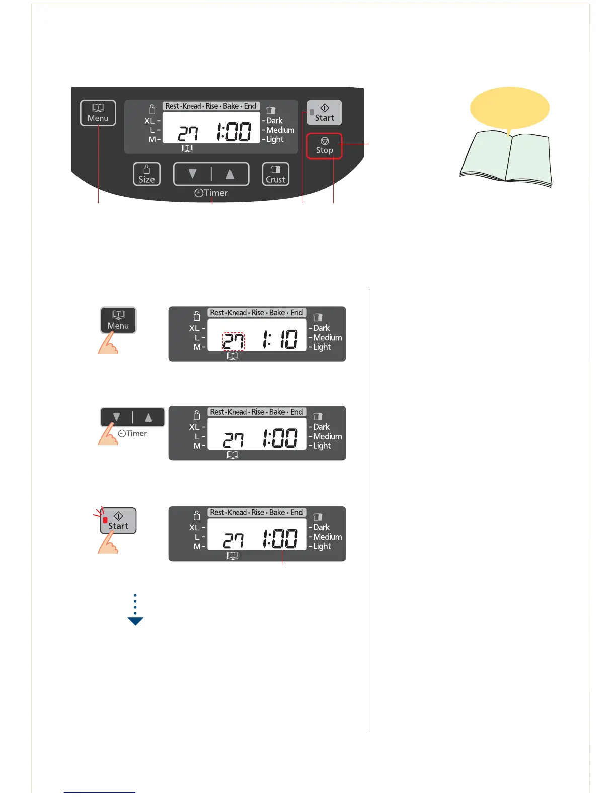 (Aanvullende kooktijd kan tot twee keer worden ingesteld. Iedere tijd moet
