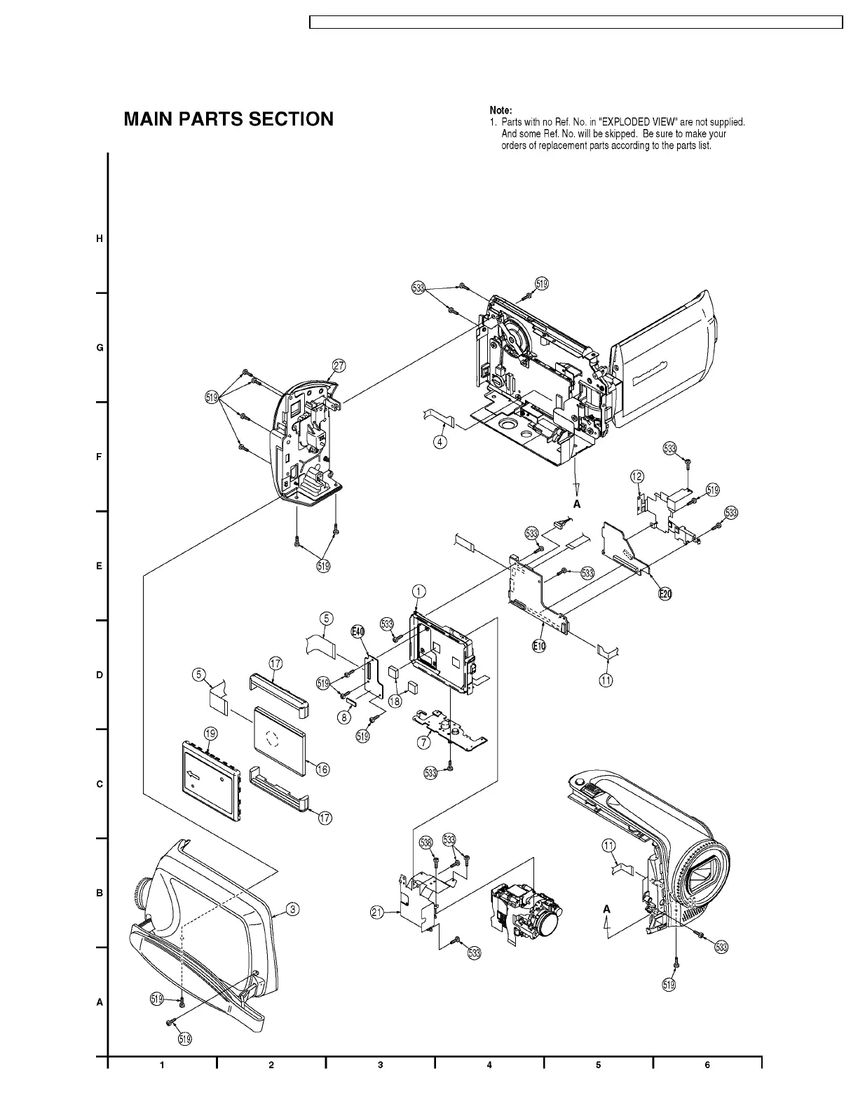 Panasonic SDR-H250E - Exploded View; Main Parts Section