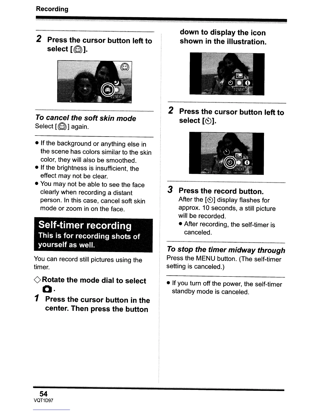 • After recording, the self-timer is