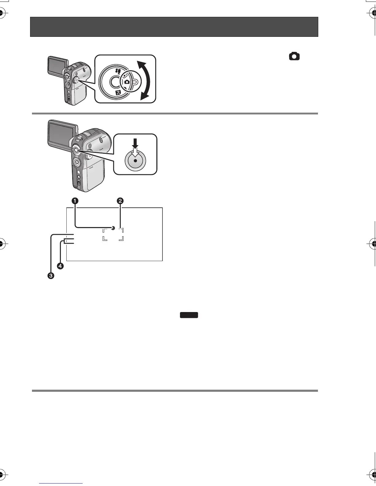 2 Press the record button halfway (not
