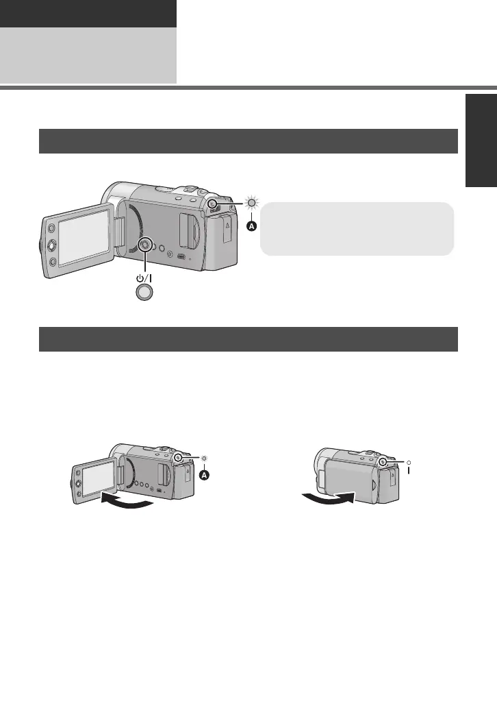 You can turn the power on and off using the power button or by opening and closing the LCD
