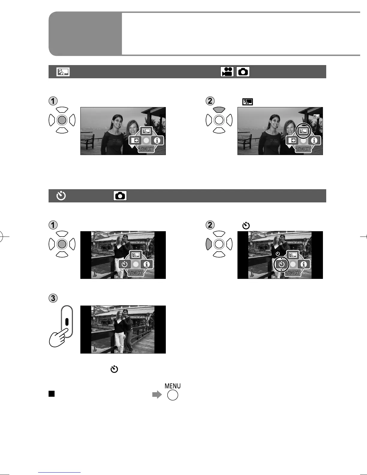 ● Setting is cancelled once picture is taken or the unit is turned off.