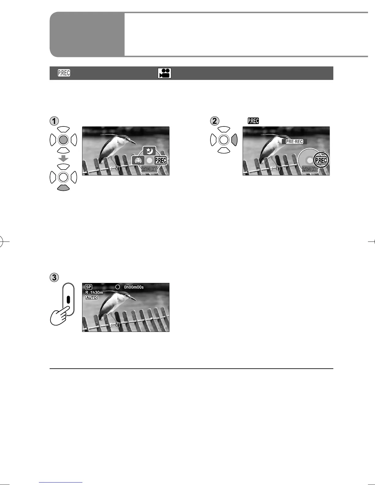 ● “PRE-REC” is displayed on the LCD monitor screen.