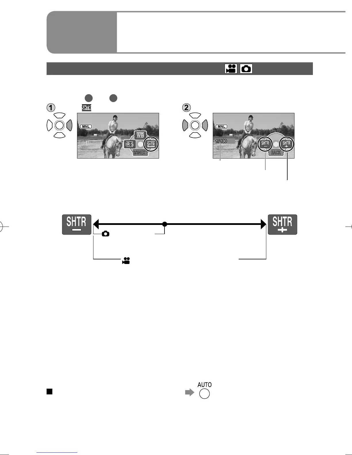 * Slower extreme becomes 1/25 when auto slow shutter (P.31) is set to [ON].