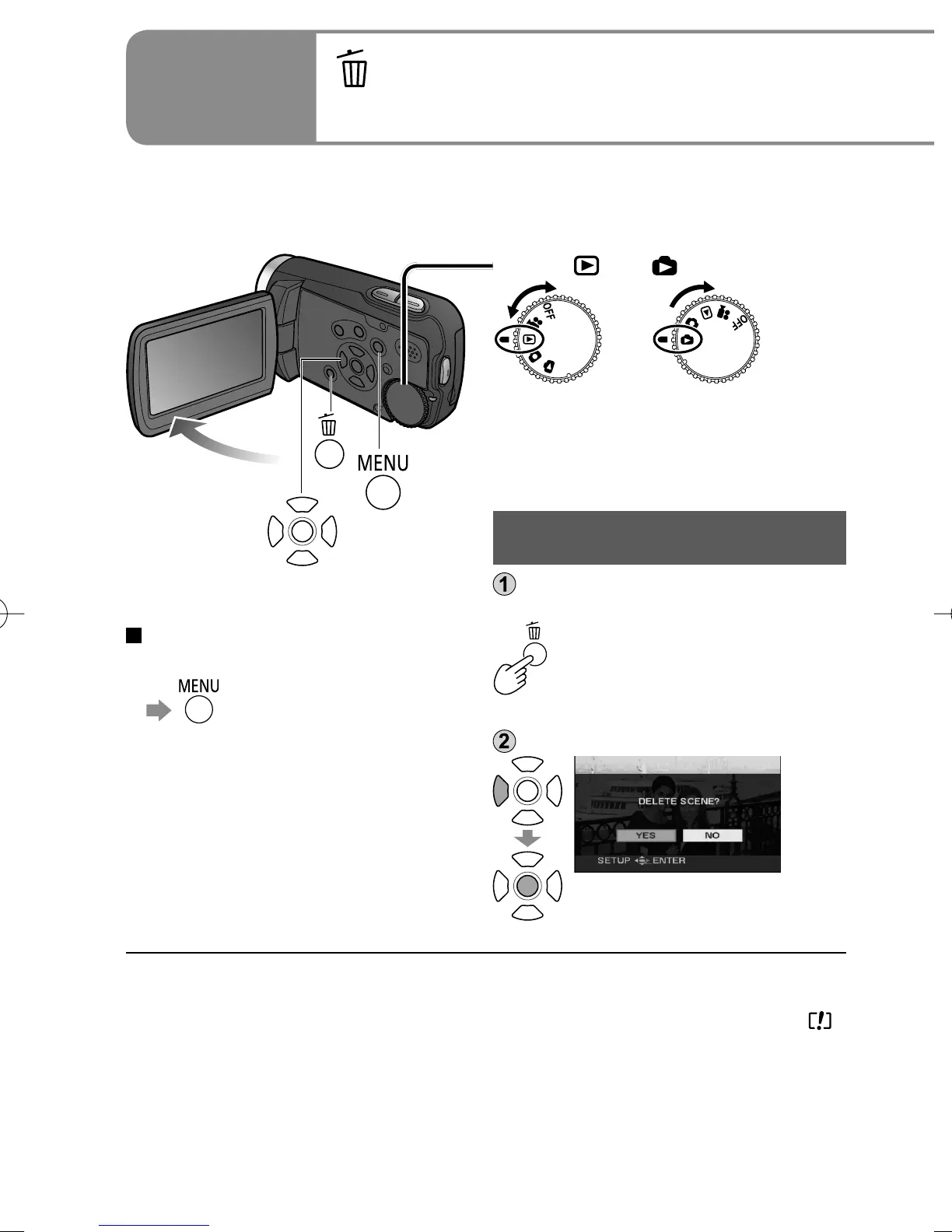 ● Only motion pictures can be deleted from the menu. ([DELETE] under [EDIT