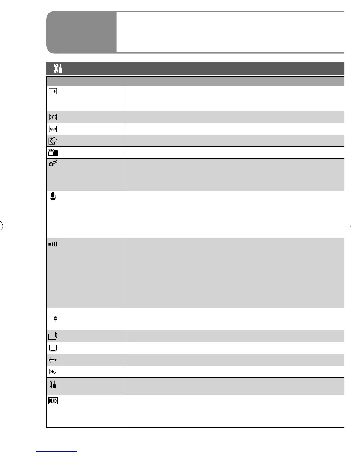 Beep: • When recording starts or power is turned on