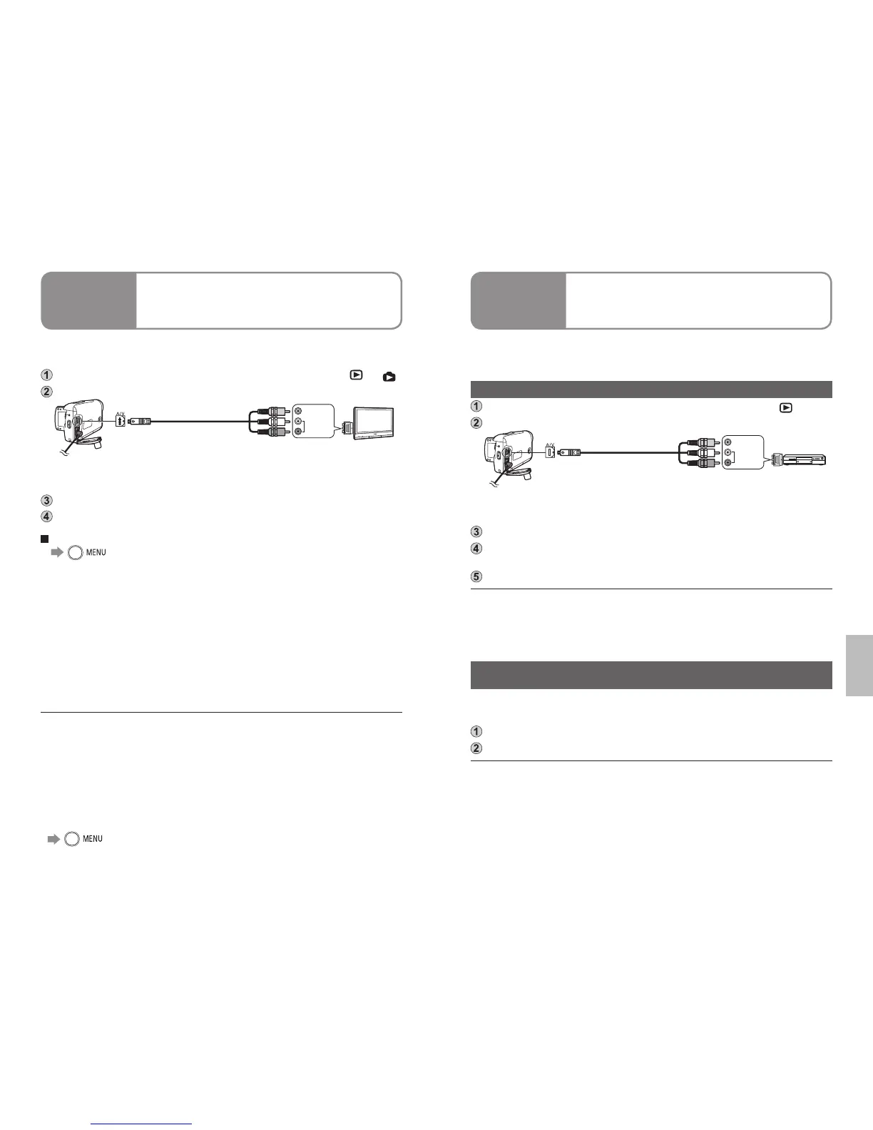 Play back motion pictures or still pictures from the unit. (P.50, 53)