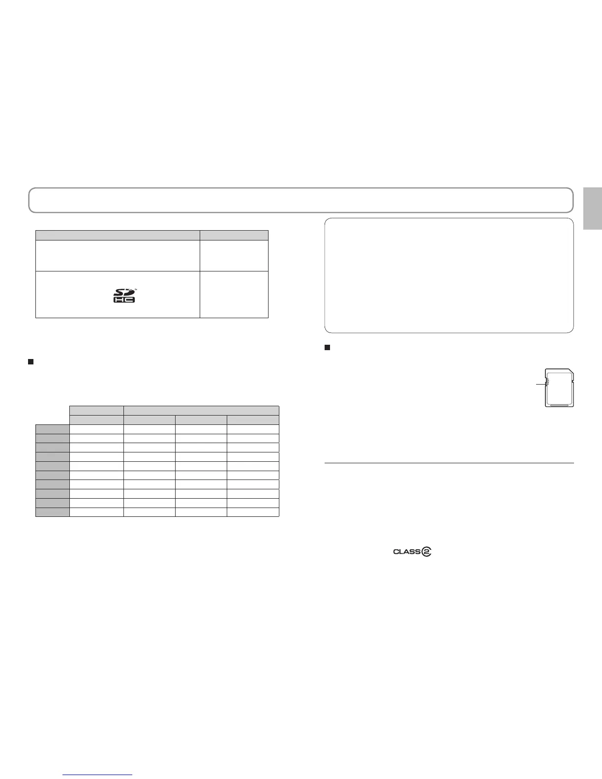 The following Panasonic SD/SDHC Memory Cards and SD speed Class 2 or